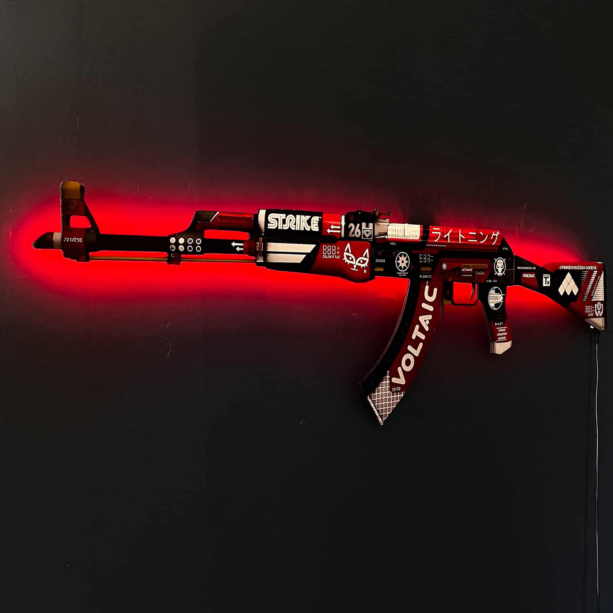 Your ultimate CS GO tribute is hassle-free. Our AK 47 wall art is paired with a ready-to-use wall mount. To ensure a seamless display experience, choose your country’s Power Supply Adapter for an uninterrupted power connection.