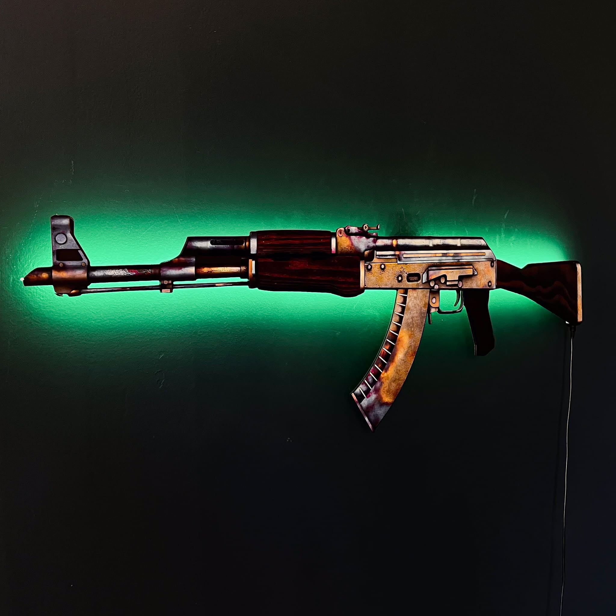 No fuss, only flair! Our AK 47 wall art comes equipped with an easy-to-use wall mount. Plus, with options to choose your country’s Power Supply Adapter, you’re guaranteed a hassle-free experience, wherever the battle takes you.