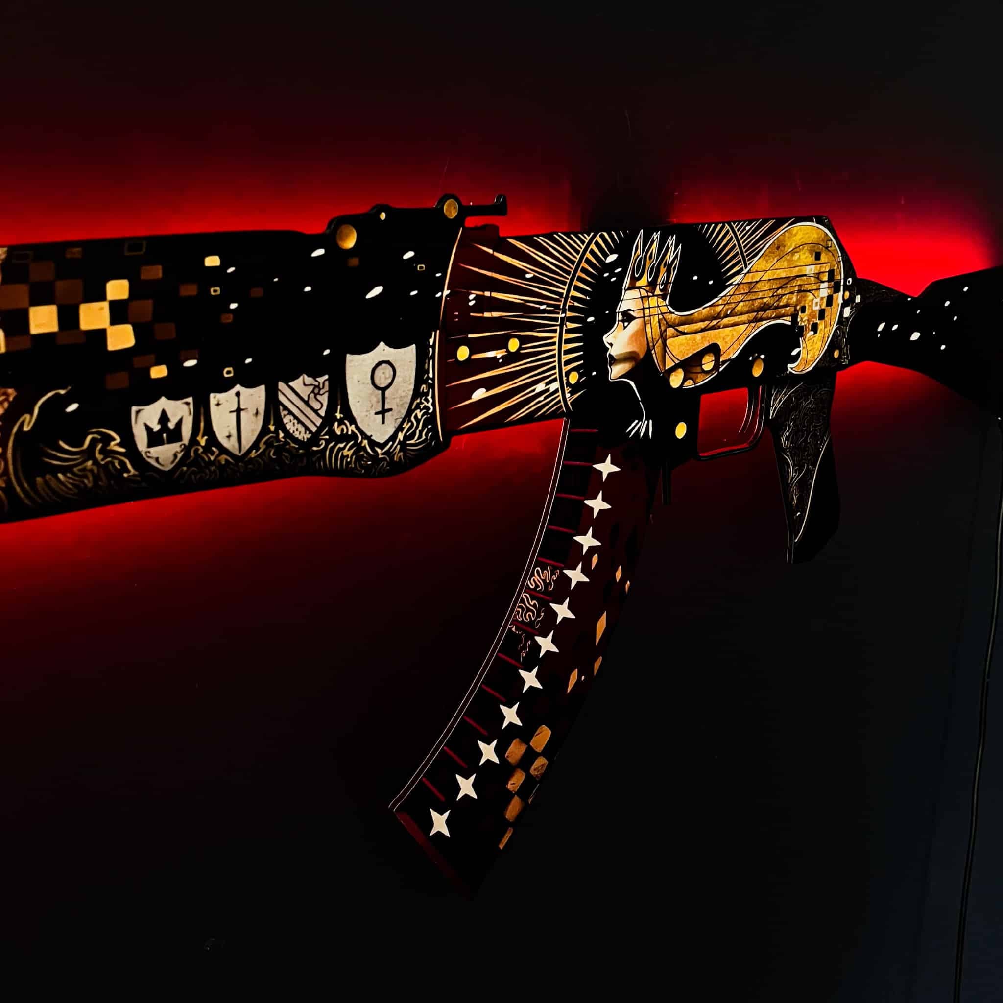 Bring the unparalleled world of Counter-Strike: Global Offensive straight into your living space! Introducing the AK 47 Empress RGB Wall Art—an opulent masterpiece, intricately crafted, and designed to dazzle every CS GO enthusiast.