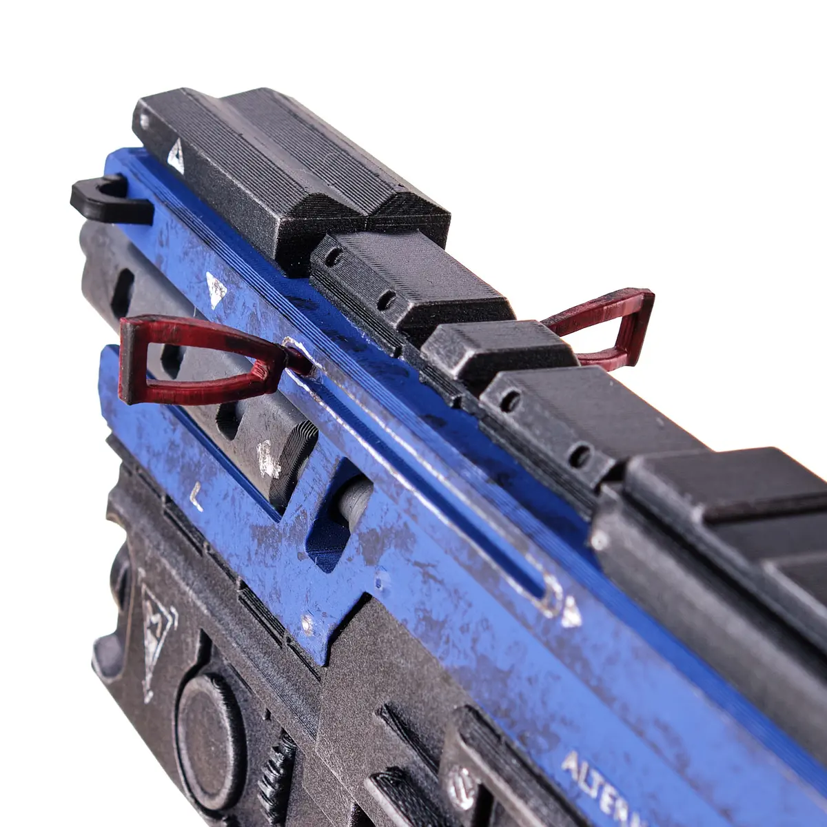 This replica features the bold, battle-worn look of the Alternator straight from the game, with its twin barrels, angled magazine, and distinct blue and black finish. The red trigger and painted wear details make it feel like it just dropped in from a high-stakes firefight.