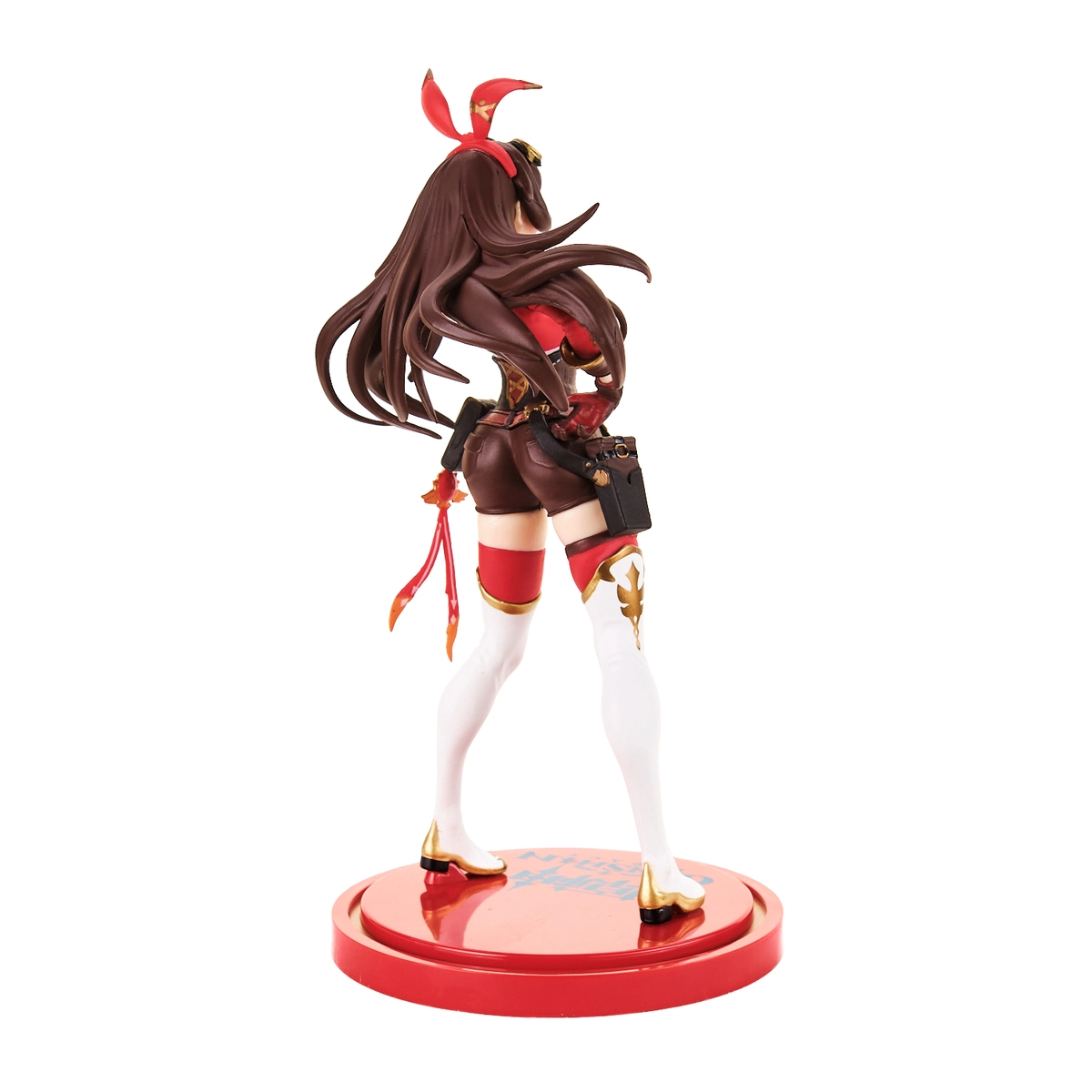 This figure features Amber standing proudly with her hand raised to her goggles, ready for the next mission. Her signature red outfit, brown shorts, white stockings, and gold accents are carefully recreated to match her appearance from the game.