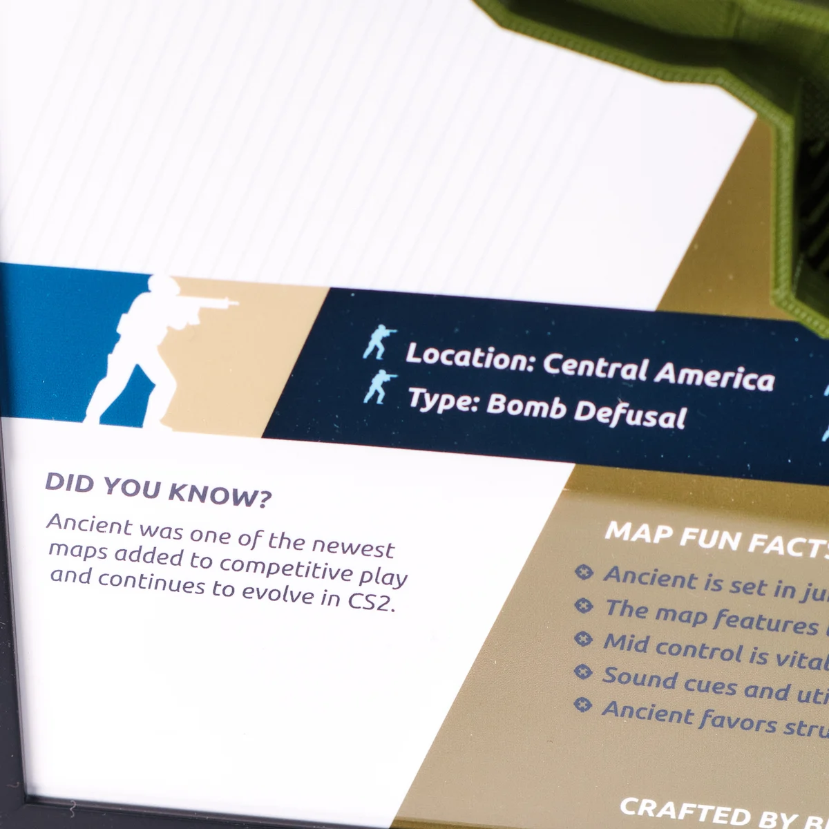 This detailed prop replica captures the full layout of Ancient, one of the newer competitive maps that quickly became a fan favorite. From tight choke points to key rotation paths, it is a piece that every player will recognize instantly.