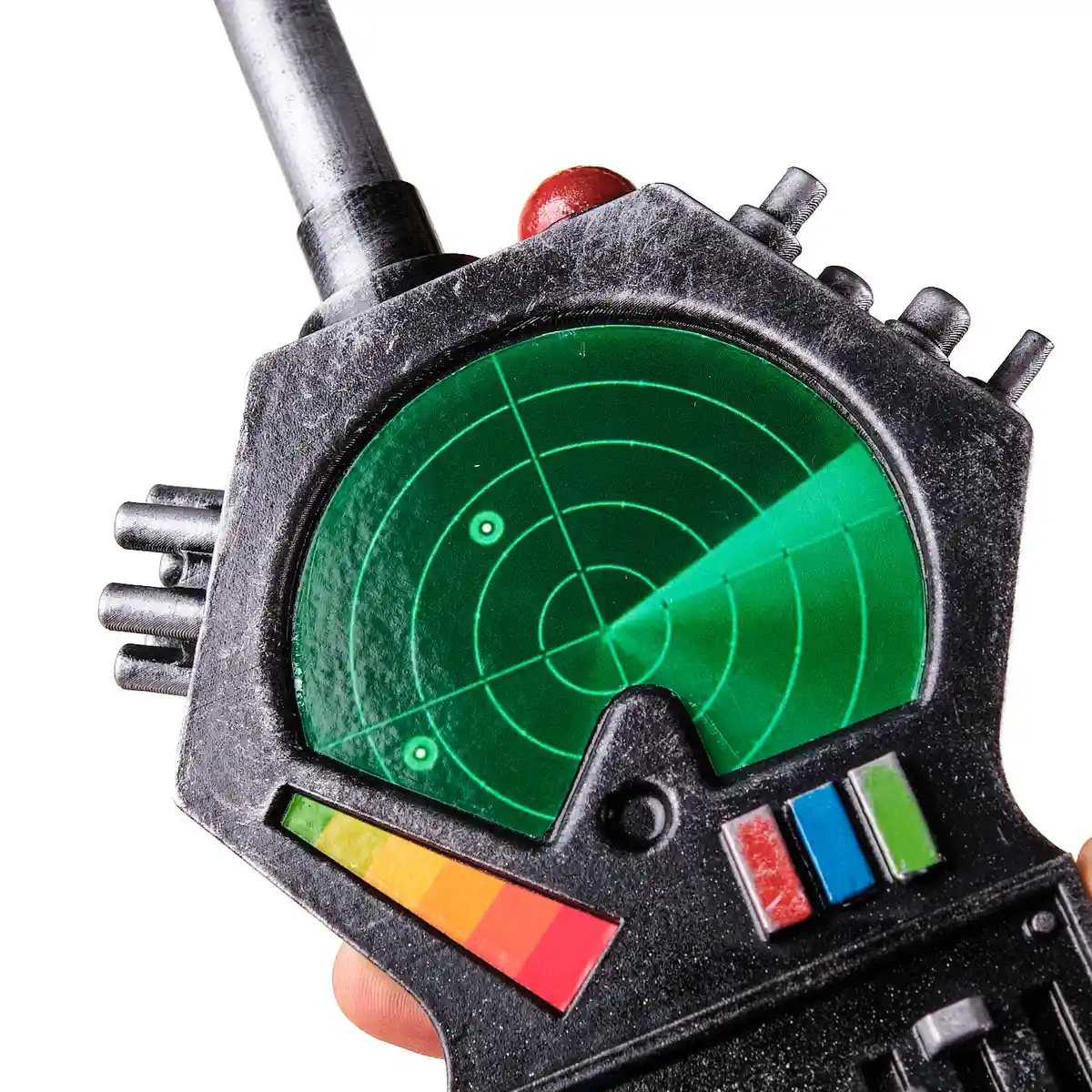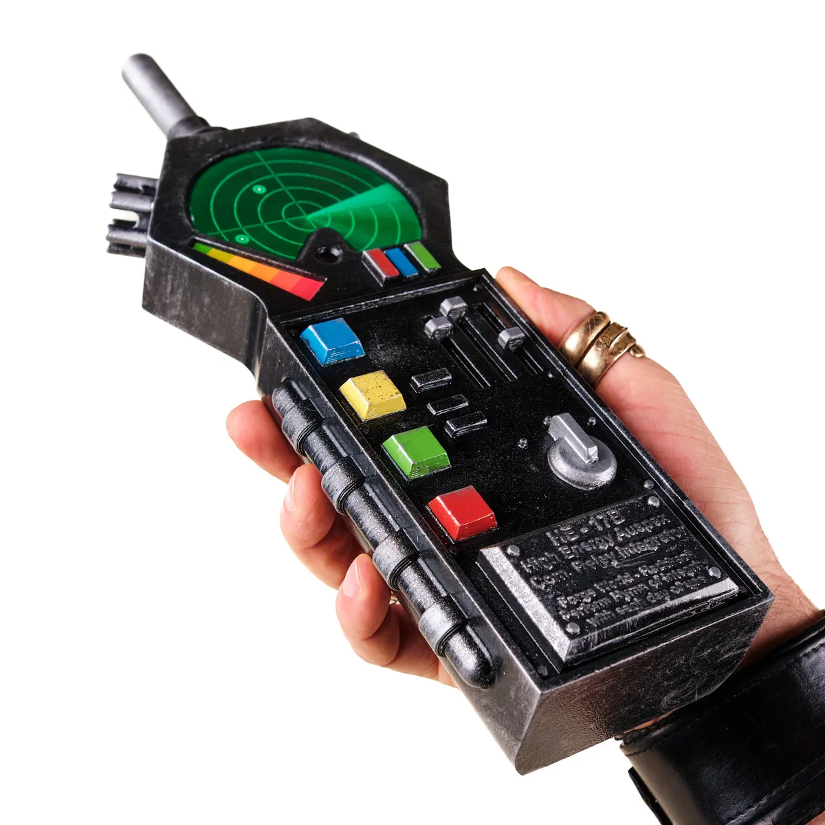 This prop replica features the Auspex’s distinct handheld design, complete with a large green radar screen, colored control buttons, and intricate panel details. The weathered black finish and sculpted knobs and switches give it the look of a real piece of Imperial tech.
