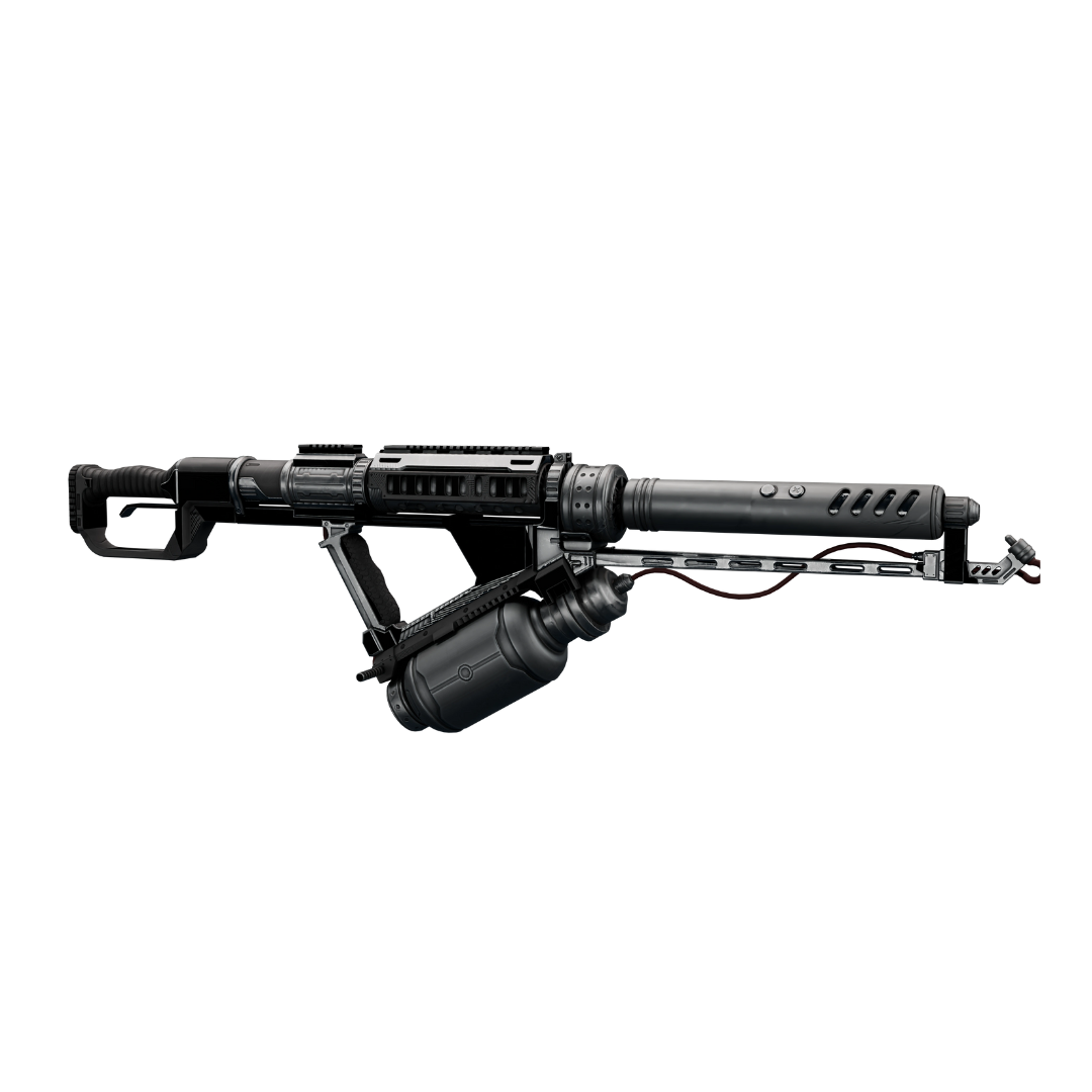 The FLAM-40 Flamethrower from Helldivers is recreated as a collectible prop, built for display or cosplay.