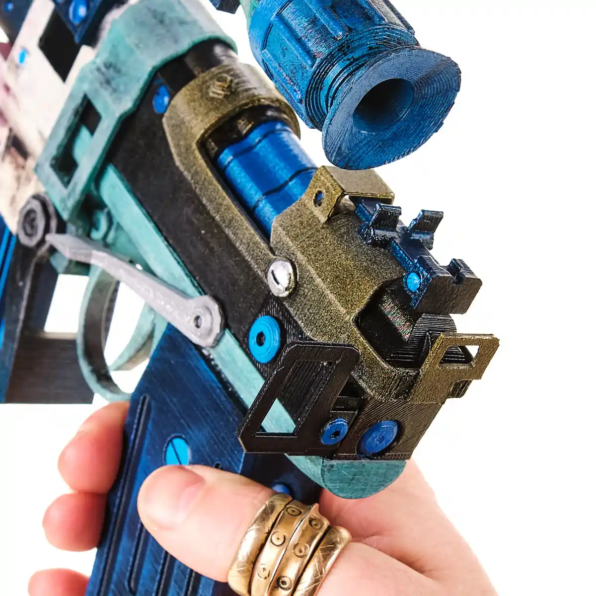 Bring one of the most iconic weapons from Borderlands 2 into the real world with this Infinity Pistol prop replica. Inspired by the legendary in-game sidearm, this piece captures the bold, exaggerated design and cel-shaded look that Borderlands fans instantly recognize.