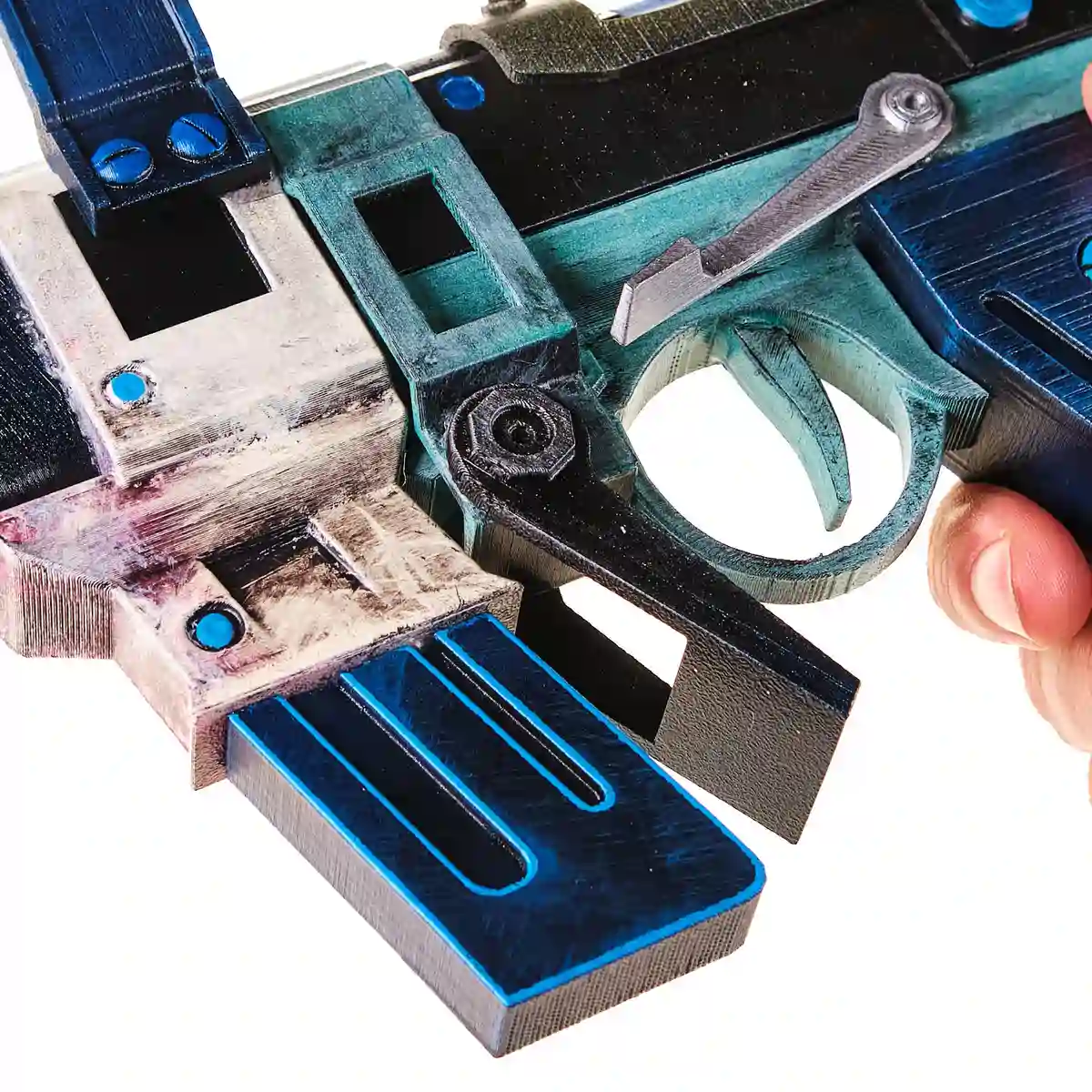 The Infinity Pistol is a static prop, made entirely from plastic and handpainted by artists. It is designed purely for display and cosplay—there are no moving or functional parts. Each prop features hand-applied paint, so slight variations may occur, making every piece unique.