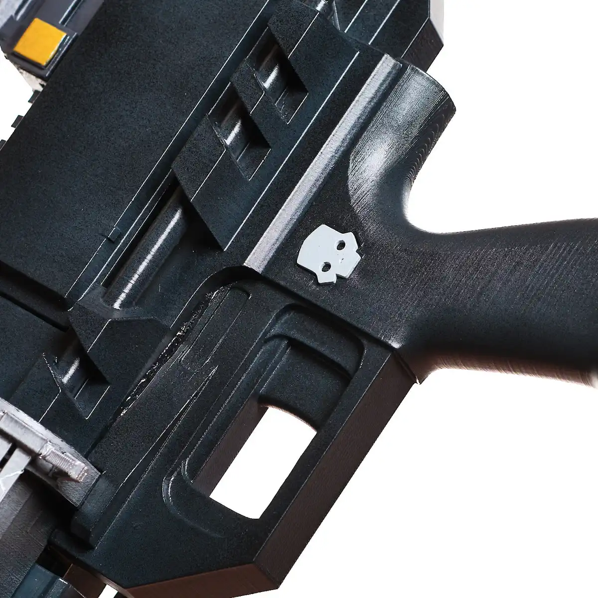 Each LAS-5 Scythe prop is handcrafted and hand-painted by our artists. Paint details may vary slightly from piece to piece, but every one is made to match the weapon seen in the game as closely as possible.