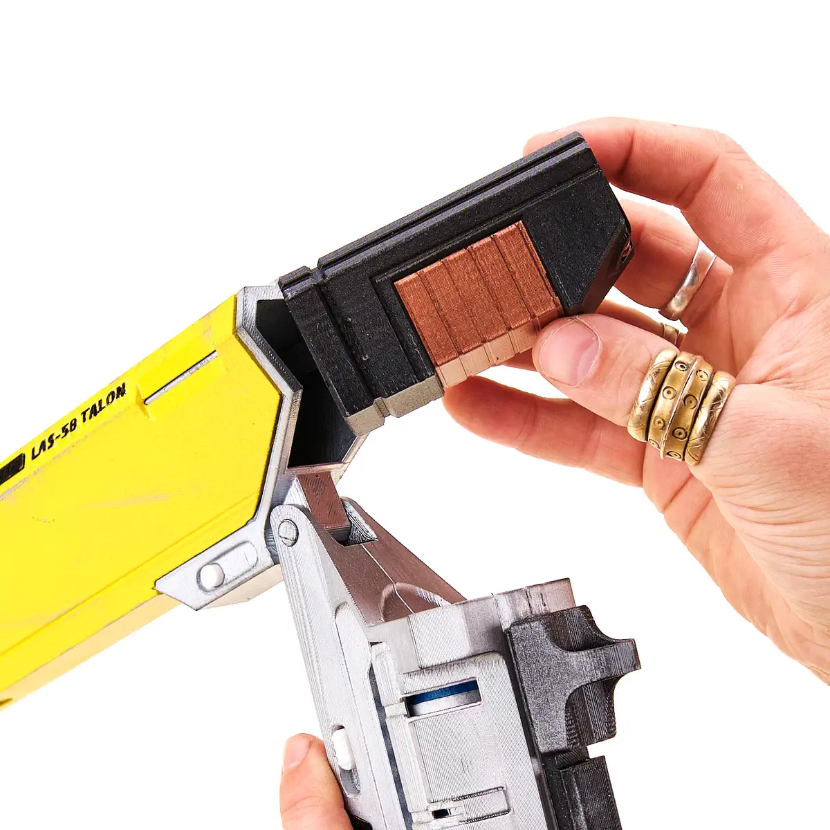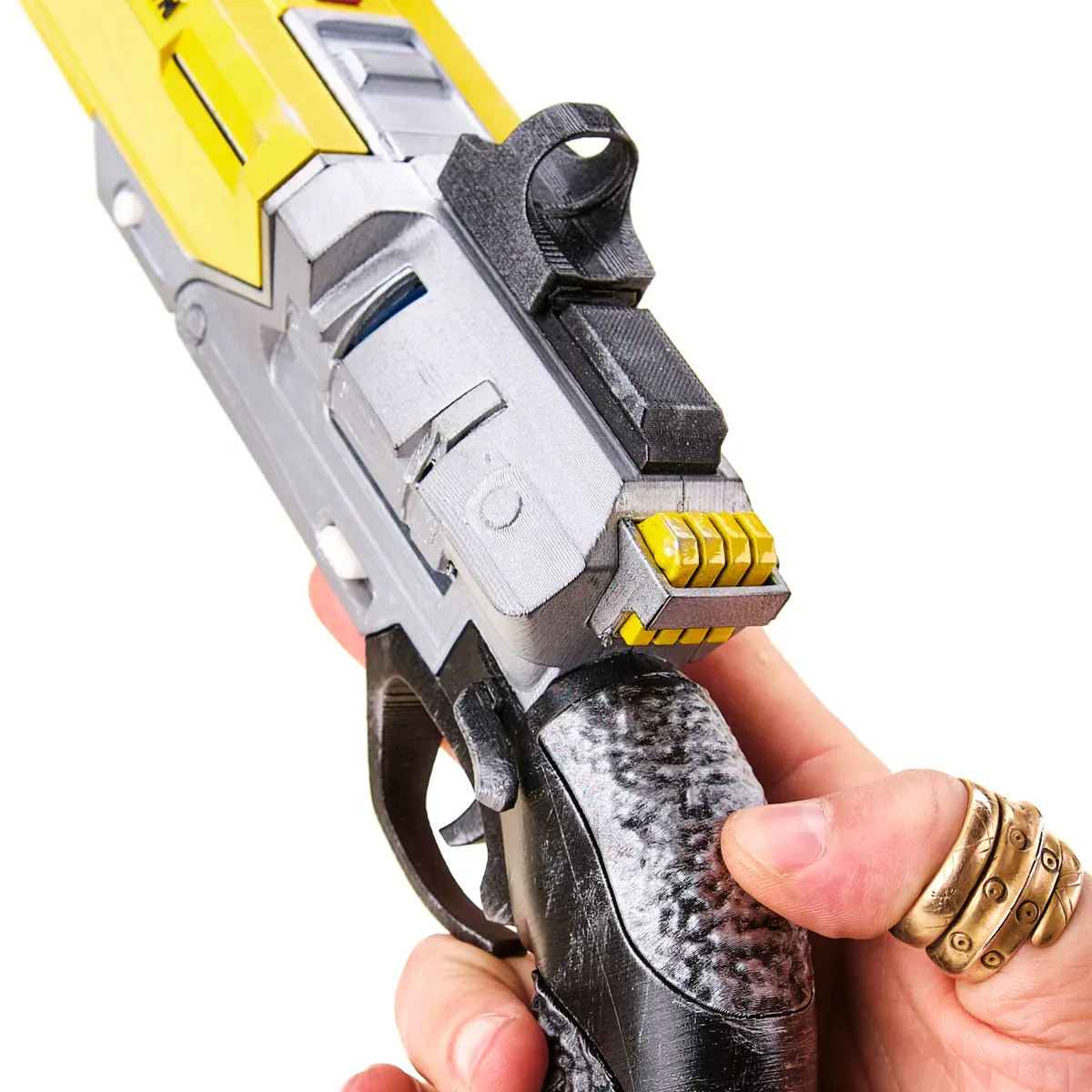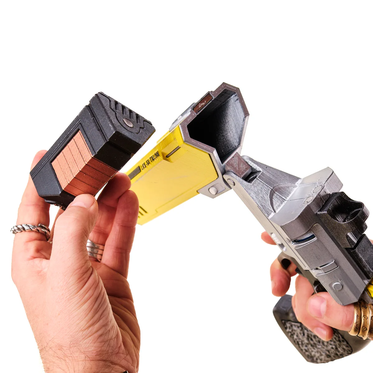 This prop replica captures the Talon’s long, angular frame, bright yellow body, and futuristic sci-fi styling seen in Helldivers 2. The V2 model features an upgraded design where the front section opens on magnetic hinges, allowing you to remove and reload the energy cartridge for a satisfying in-universe feel. The moving trigger adds another level of realism for display or cosplay.