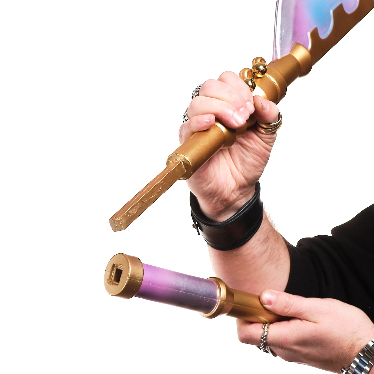 For easier transport and storage, the spear is designed to separate into two sections. The shaft splits at the center connector, allowing the prop to be packed and carried much more conveniently—perfect for conventions, travel, and cosplay events.