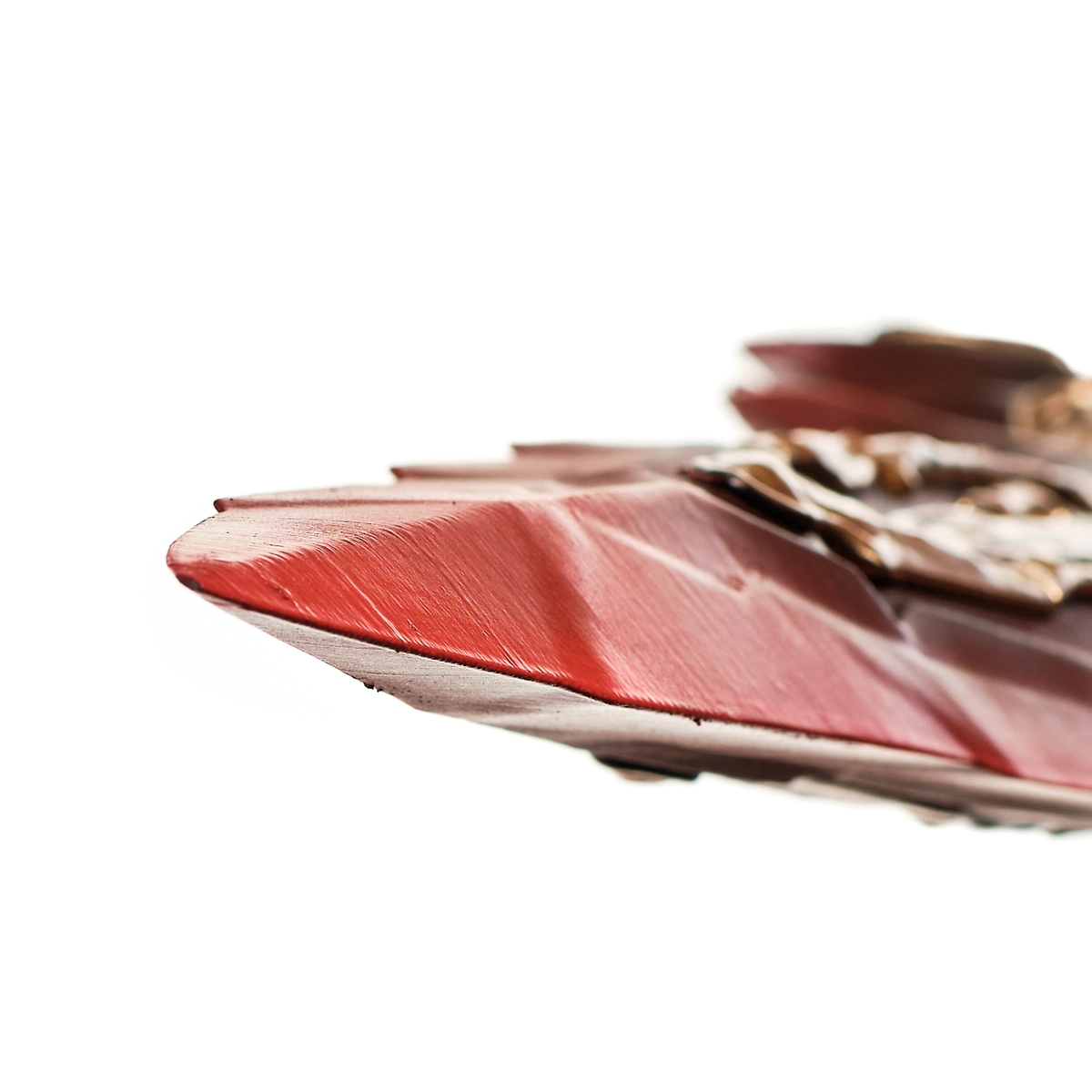 Each prop replica is handcrafted and handpainted by artists. The red gradient, gold trim, and weathered details are carefully applied to match the in-game look. Because every piece is made by hand, small variations may occur, but each prop replica is made to look as close to the original design as possible.