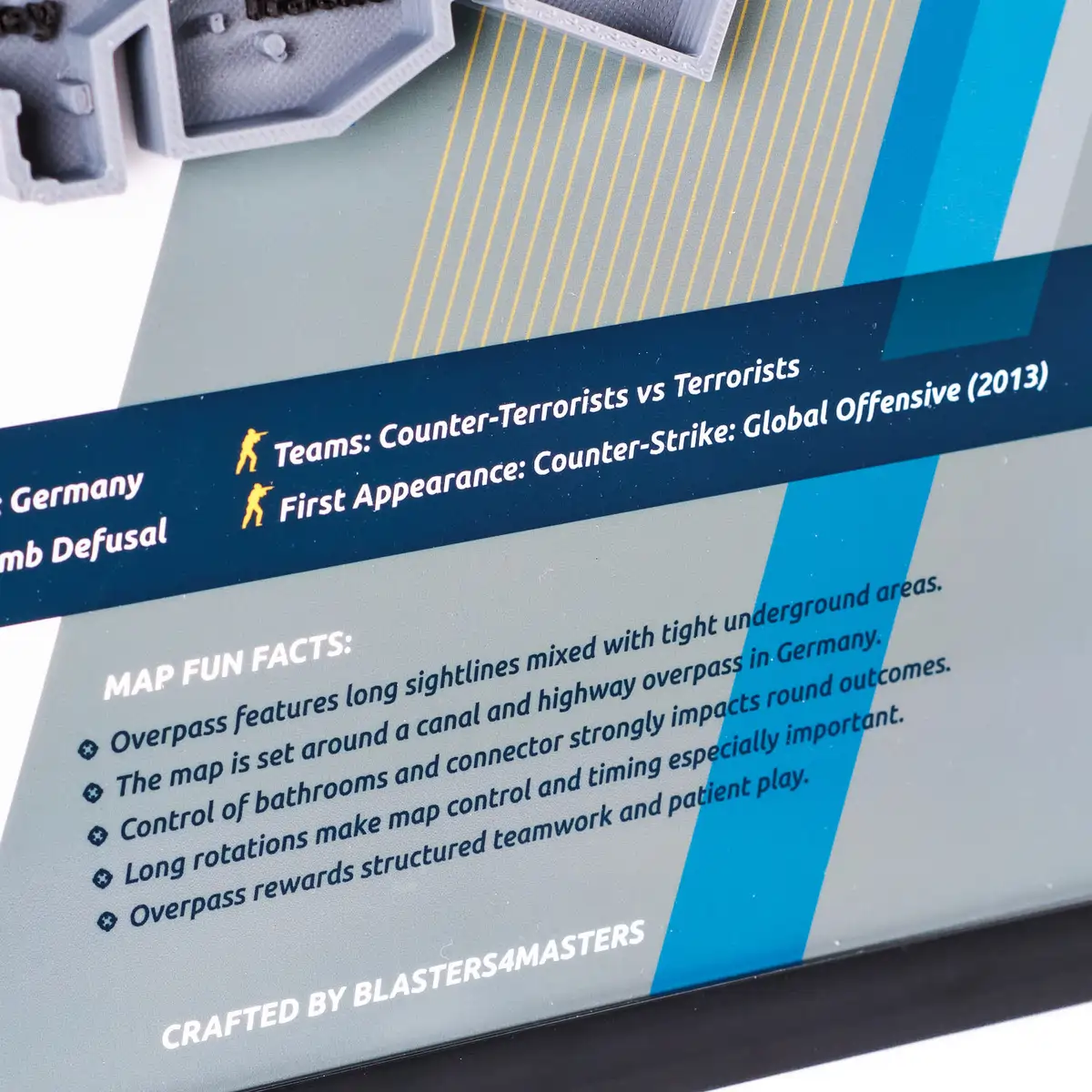 Bring smart plays and tight teamwork to life with this Overpass 3D Map Plaque prop replica from Counter-Strike 2.