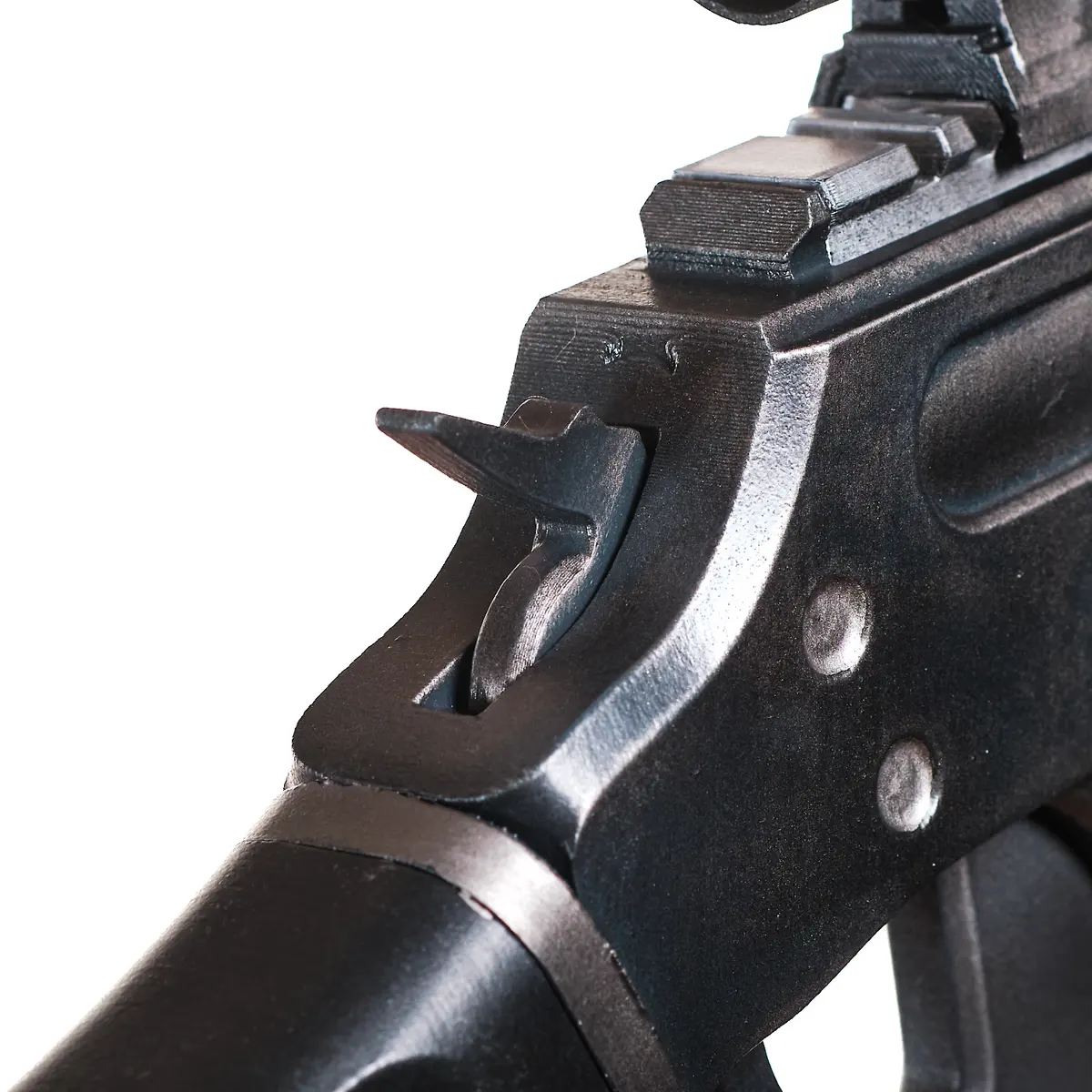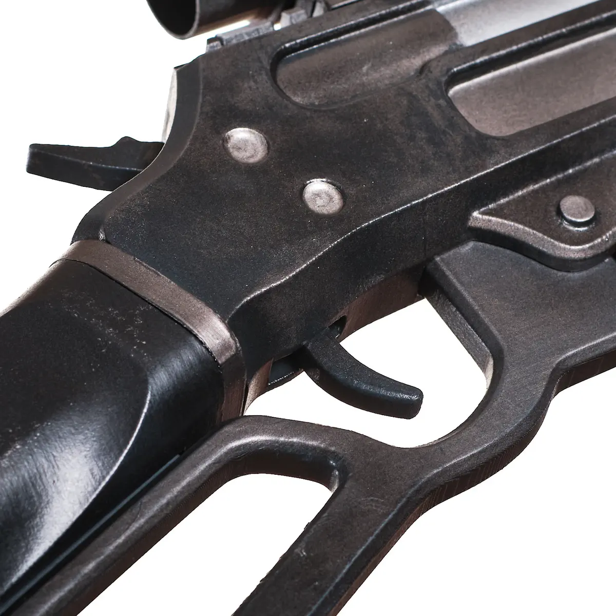 The R-6 Deadeye is made of plastic and is a static prop. The trigger, lever, and scope do not move. It’s designed for realistic appearance only, made for photos, cosplay, and display-not functional or built for rough play.