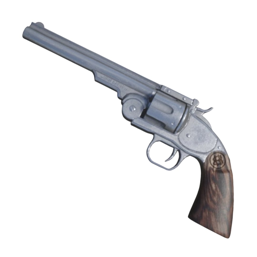 The Schofield Revolver is a powerful and elegant sidearm featured in Red Dead Redemption 2, prized for its higher damage and balanced performance. Favored by Arthur Morgan and elite gunslingers, it delivers exceptional stopping power with a faster reload thanks to its break-action design. With refined styling and rugged functionality, this revolver bridges the gap between classic Western utility and sophisticated sidearm. This static replica captures the revolver’s clean lines, iconic top-break frame, and legendary firepower with authentic detail.
