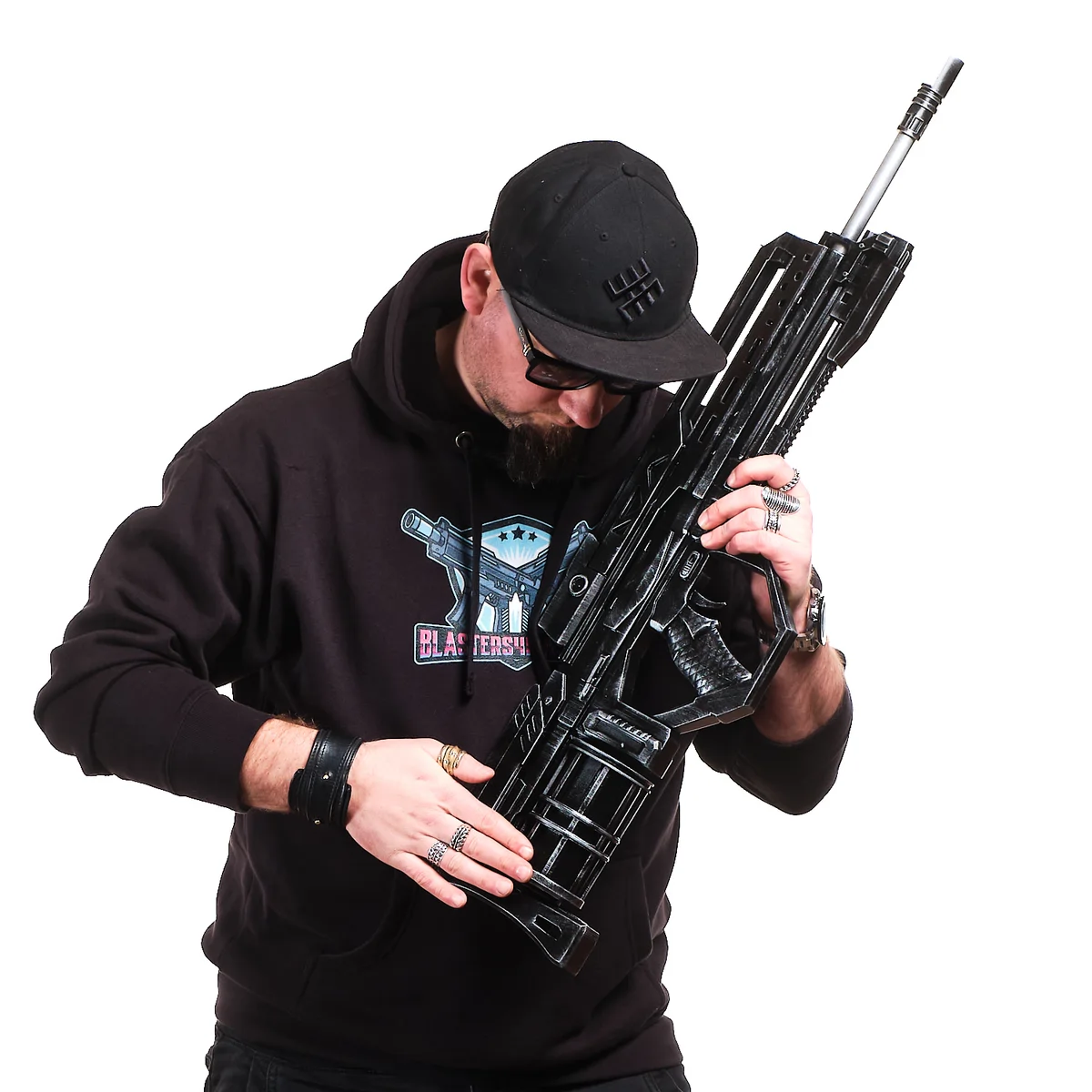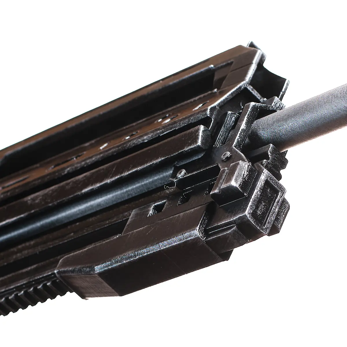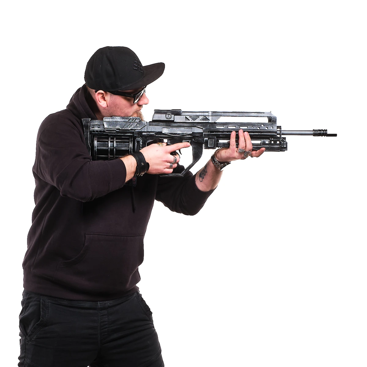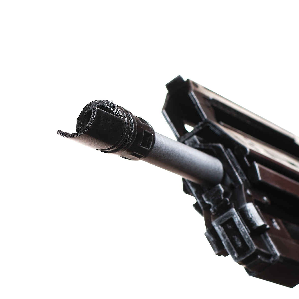 This handcrafted prop replica features the long, squared barrel, vented upper frame, and thick, tactical body that define the StA409 Keyzer. From the blocky muzzle to the reinforced grip and angular guard, every detail reflects the rugged military style of the game. The dark finish and sharp edges give it that cold, futuristic combat look straight from the front lines.