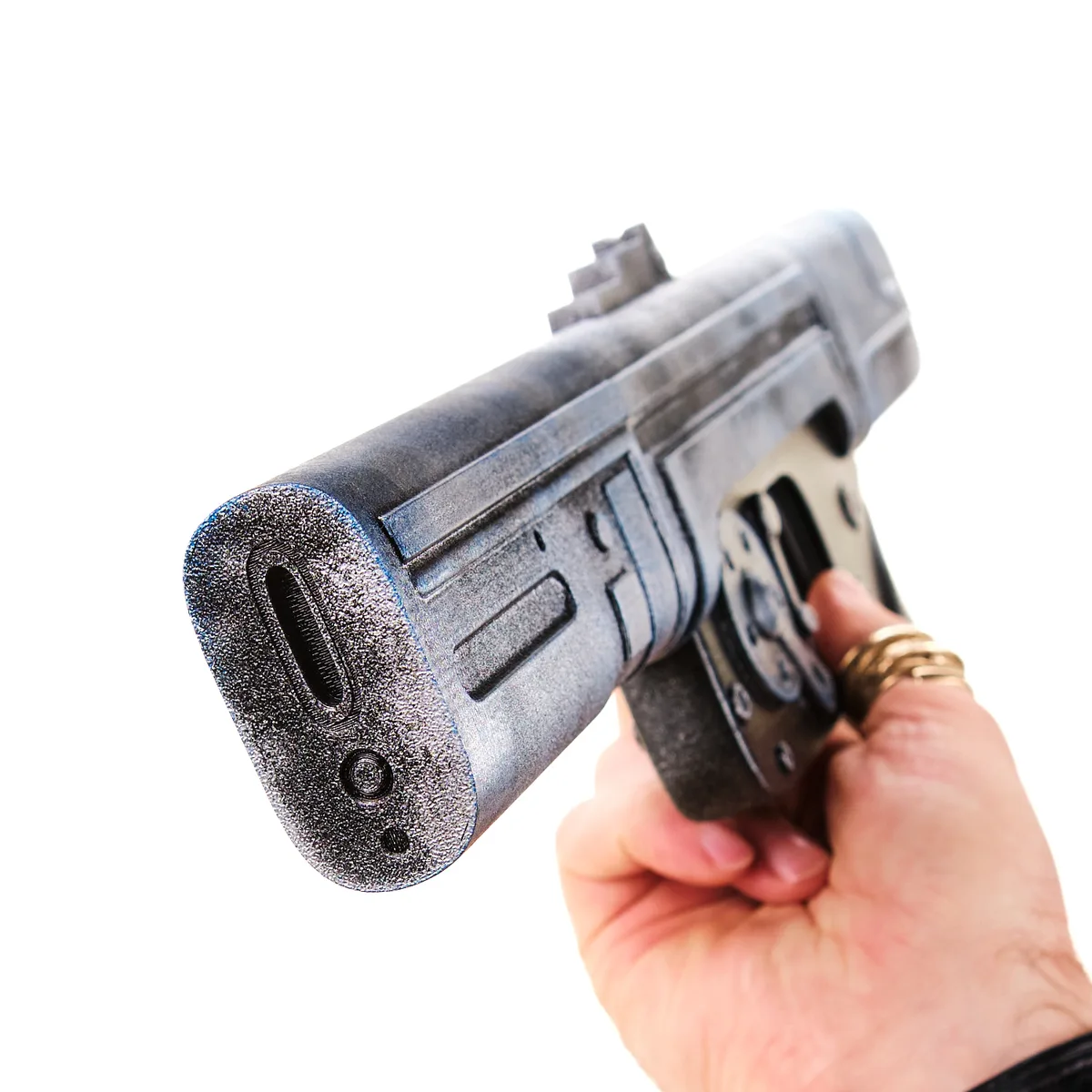 Bring classic Star Wars style to your collection with this L7 Liquidsilver Light Blaster Pistol prop replica, inspired by the iconic weapons seen throughout Star Wars. This blaster captures the clean lines and industrial sci-fi look that fans instantly recognize.