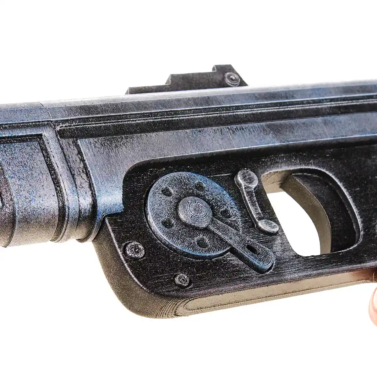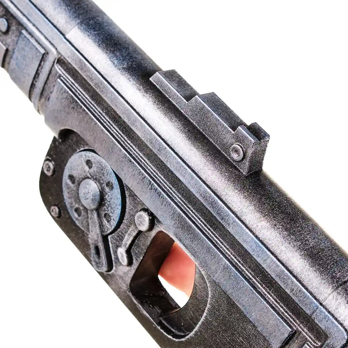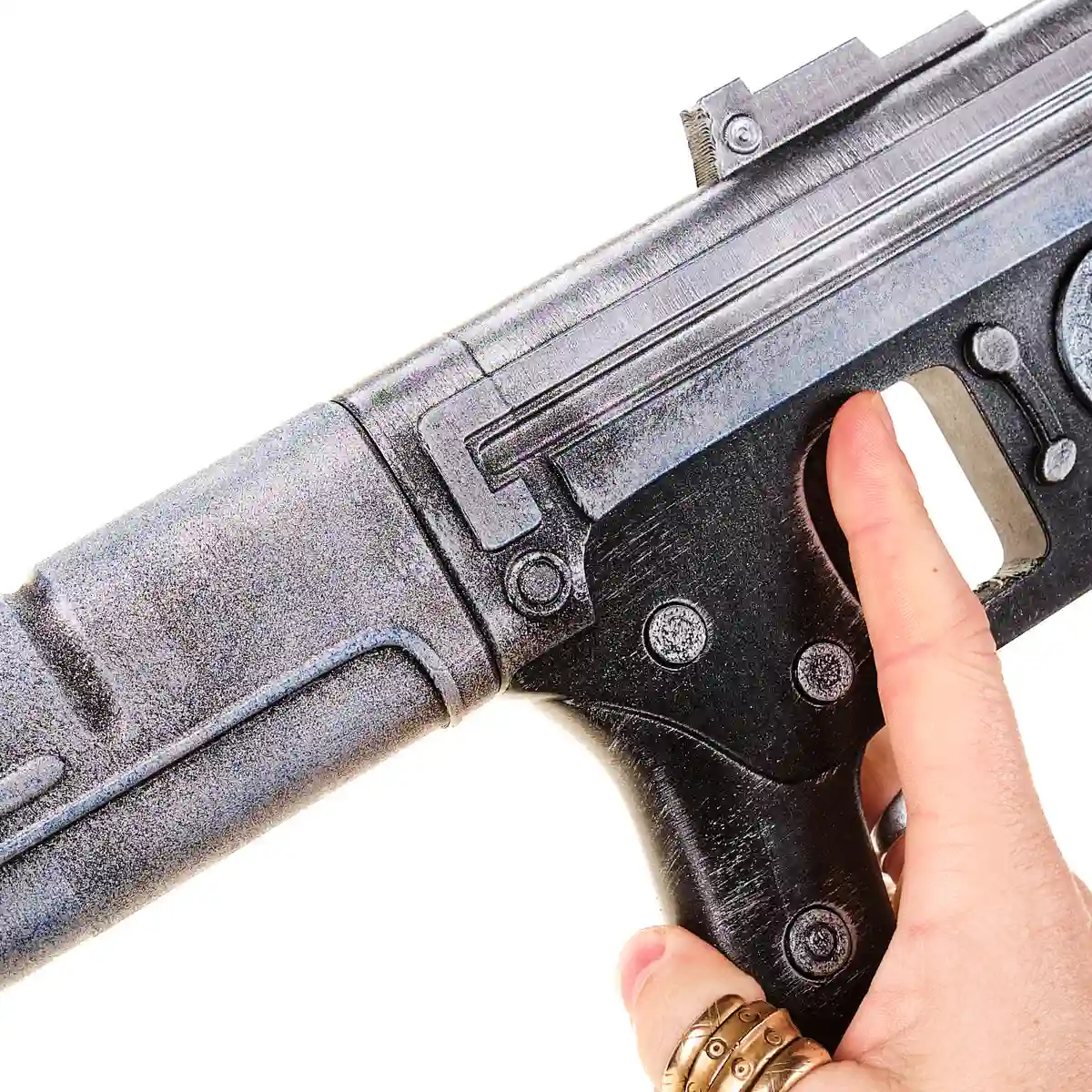 This prop replica is made from plastic and is a static display piece. The trigger and parts do not move, making it perfect for cosplay, shelf display, or themed setups without any real-world functionality. The finish is carefully applied to give it a worn, screen-inspired appearance that feels right at home in the Star Wars universe.