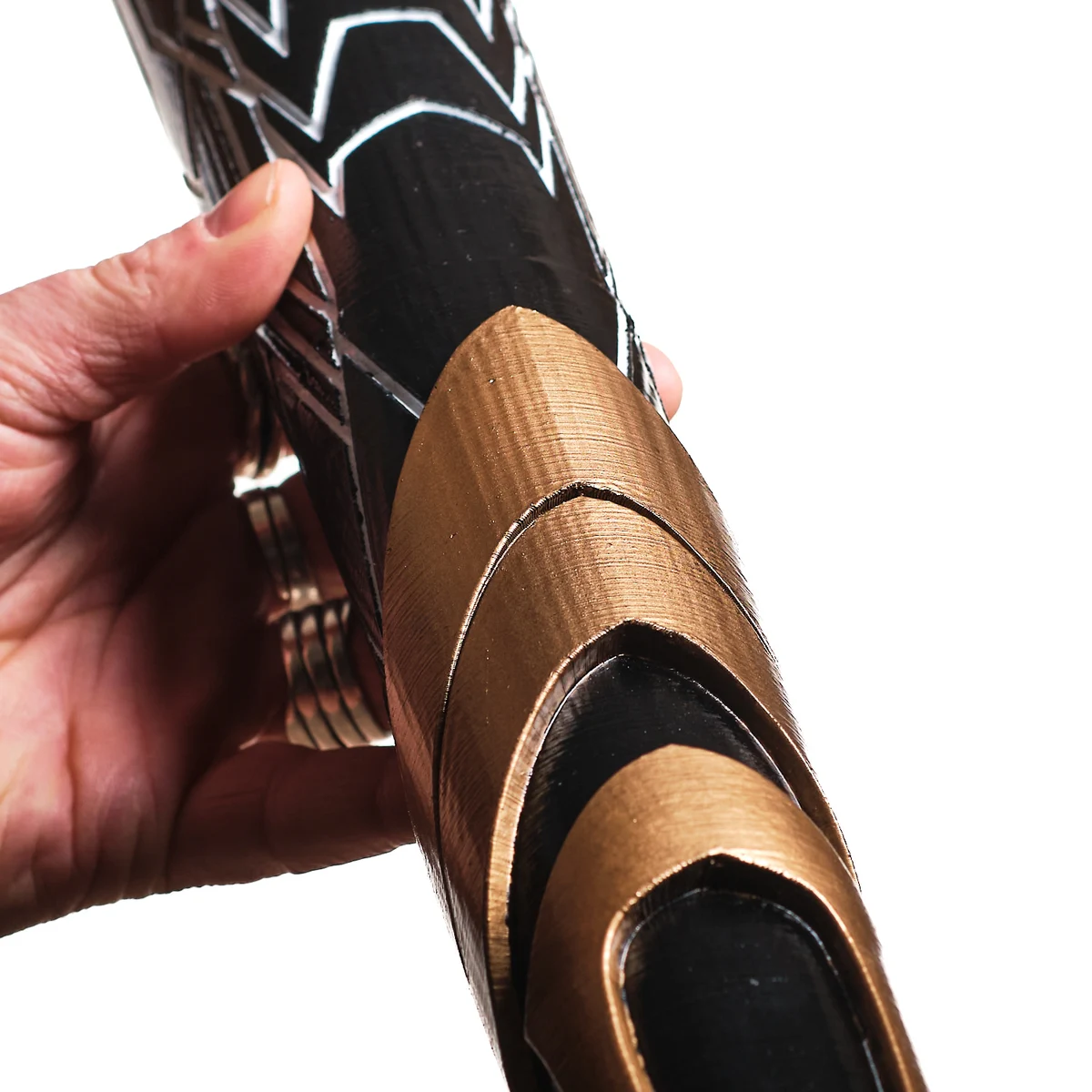 This full-size replica matches the sleek, high-tech design seen in-game. With black and gold spiraling details and etched patterns just like the bat used by the physical Trailblazer, it looks like it came straight from the battlefield. Whether you’re cosplaying your favorite scenes or adding it to your collection, this prop makes a powerful impression.